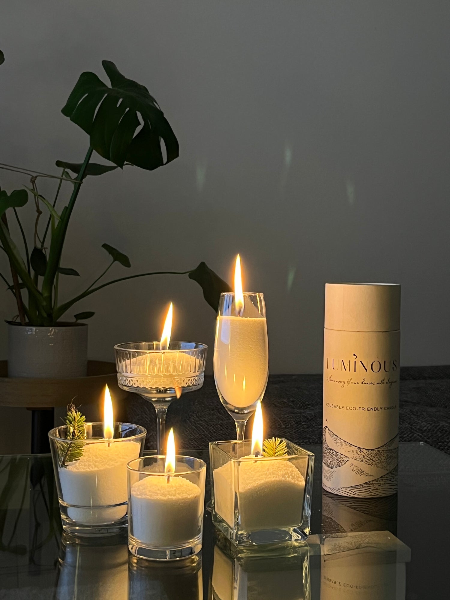 Za znamko Luminous Candles stojimo ustvarjalci čistih, elegantnih in varnih sveč, ki združujejo edinstven dizajn s trajnostnimi vrednotami.